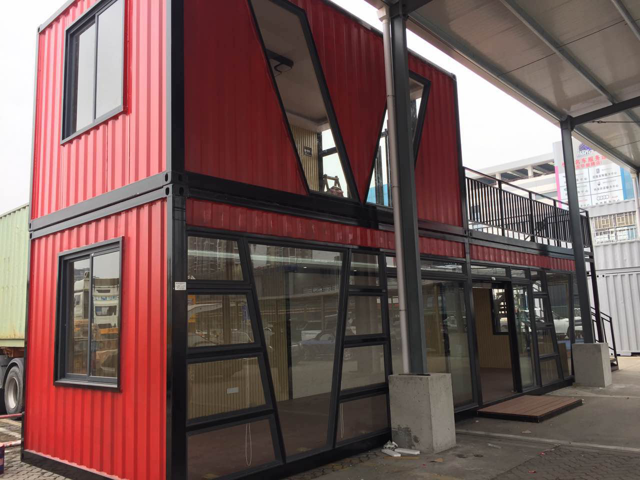 The office building is composed of several finished containers that have been relocated from Nansha District, with a connecting office area and a canteen on the second floor. On the third floor, an upright box of 12 meters is used as a stairwell...