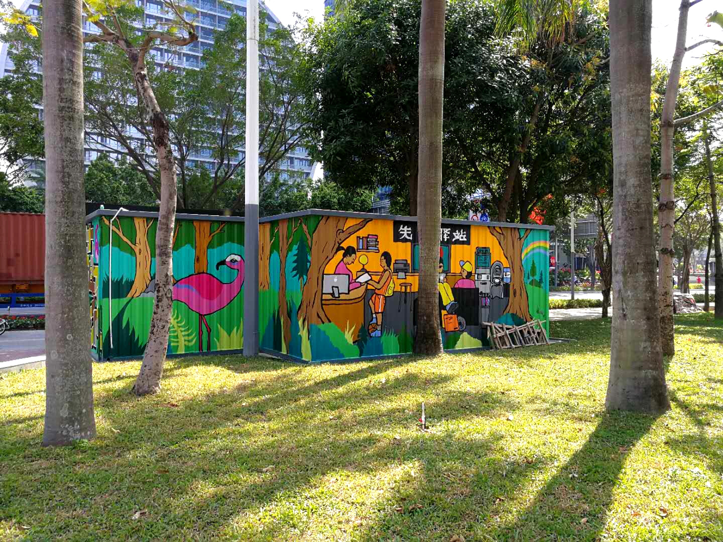 The post station is made of two containers in tandem, and the front wall is made of large area of glass doors and Windows, with smooth lines, sharp edges and corners, fashionable shapes, transparent and bright, which highlights the post station's...