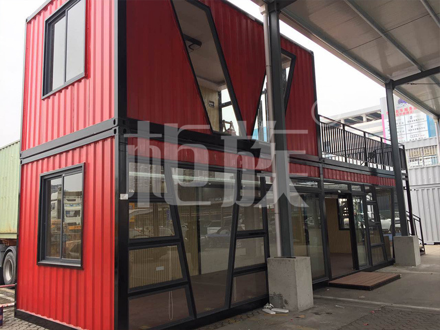 小而精的辦公室,一樓辦公帶遮陽棚,側面樓梯可達二樓平臺。承重力強,箱頂豎有大型LED廣告屏。室內設衛生間,可兼任住宿和短時休息用途。