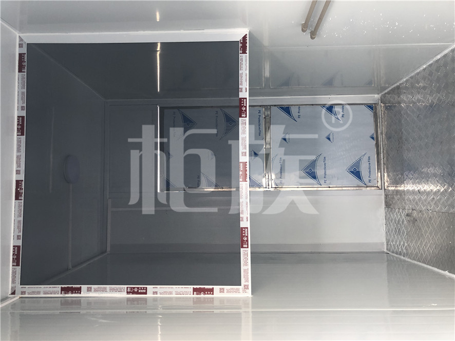 箱體用材:鍍鋅方管框架、A級大波紋夾芯墻板、不銹鋼門、鋁花紋地板。