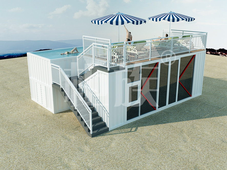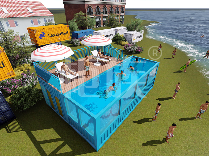 集裝箱泳池可以完全在工廠預(yù)制完成,占地小、造價(jià)低,適合庭院、海邊的度假地、以及其他公共游樂場所使用。